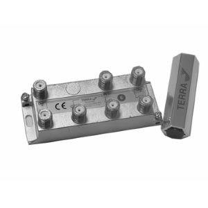 Partitore in pressofusione TV+SAT con connettori F divisore 6 vie TERRA passaggio DC su tutte le uscite.