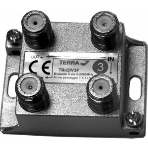 Partitori in pressofusione TV+SAT con connettori F divisore 3 vie TERRA passaggio DC su tutte le uscite.