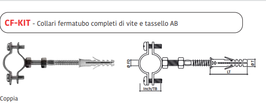 Busta da 2 collari f/tubo CF-KIT D. 2" 58-62mm viti e tasselli. AB Confezione 2 Pezzi.