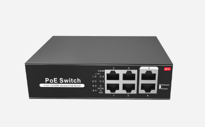 Switch di Rete PoE 4 porte PoE + 2 Uplink RJ45 Velocità fino a 100 Mbps su tutte le porte Fino 60W in totale per tutte le porte Larghezza di banda 1.2 Gbps Standard IEEE802.3af (PoE) / a (PoE+)