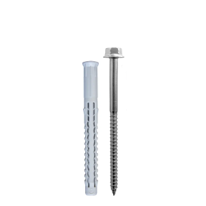 NC-PS TEF di Nobex è un tassello prolungato in nylon abbinato a una vite con testa esagonale flangiata, che distribuisce meglio il carico sulla superficie di fissaggio e riduce il rischio di deformazioni o sfondamenti nei materiali più delicati.